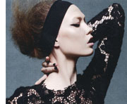 Head Bands.Easy every day hair. Pull your hair back,pin it up and put on a head band. From Dolce and Gabbana. Black lace top. Black head band. Black nail polish and eyeliner.
